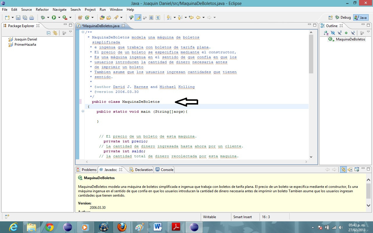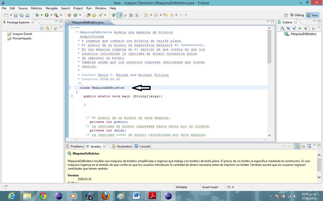 Verifique si es posible quitar la palabra public de la parte exterior de la clase MaquinaDeBoletos